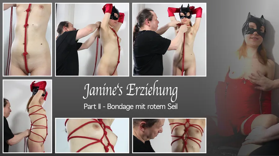 Erlebe in diesem erotischen Video, wie die zierliche Janine für ihr Vergehen ordentlich bestraft wird. Zuerst steht Bondage mit einem roten Seil auf dem Plan, um ihren süßen Körper fest zu fesseln. Sie soll sich bei ihrer Bestrafung kaum bewegen können. Lass dich von dieser intensiven Session mit Janine mitreißen.